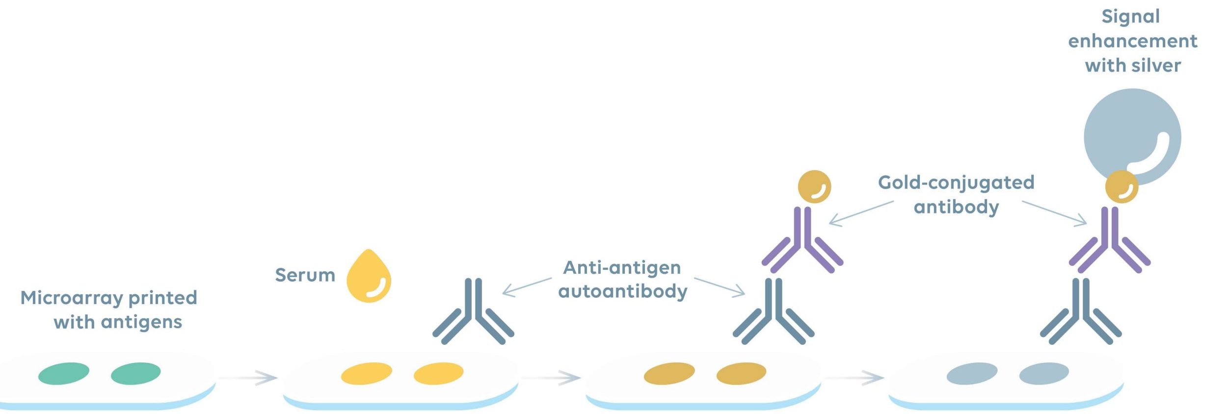 The microarray is made of 2 glass substrates, one side printed with antigens to detect CTD antibodies.