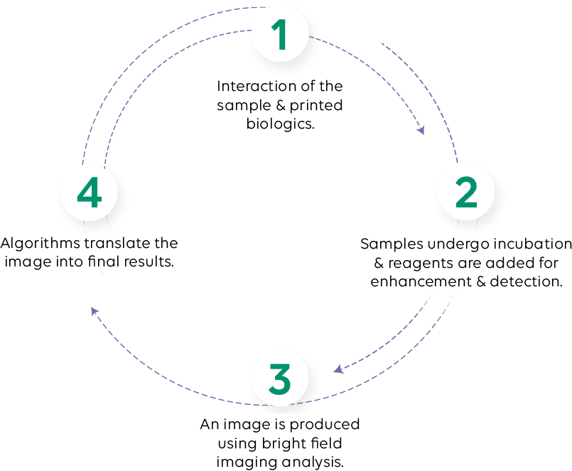 - Distinctive design — up to 132 spots of microscopically printed biologic material enable multiplexed results in a single step